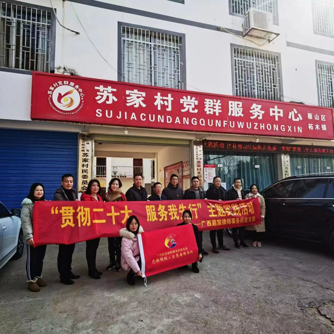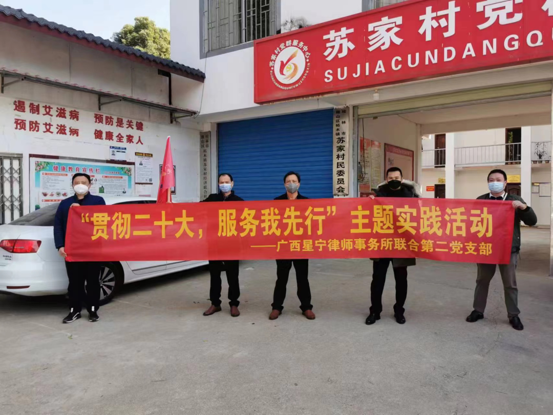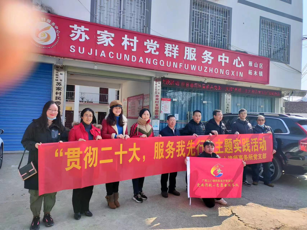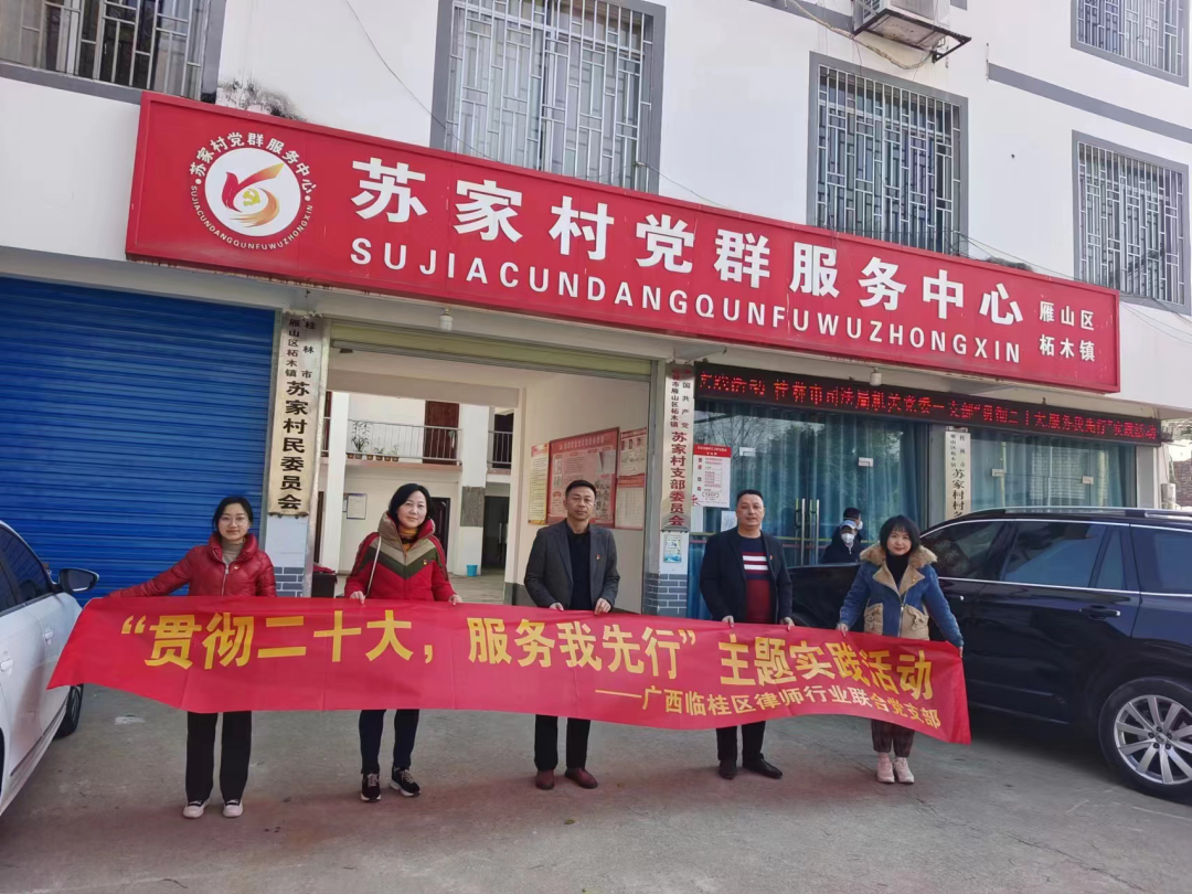 桂林市(shi)律師行業黨委(wei)在(zai)蘇傢(jia)村開展(zhan)“貫徹二十大(da)·服務(wu)我(wo)先(xian)行”主(zhu)題實踐(jian)活動(dòng)